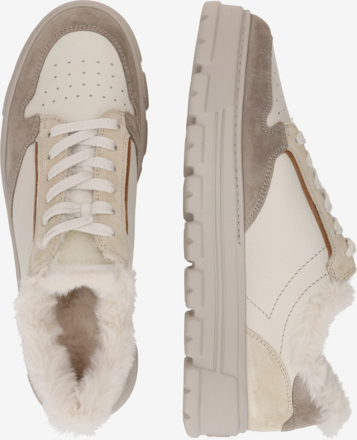 Color-BlockingLeerRonde neusVetering met 6 gatenProfielzolenMateriaal mixTeddy voeringPerforatieFlexibele zoolGlad leerSuèdeSnoersluiting