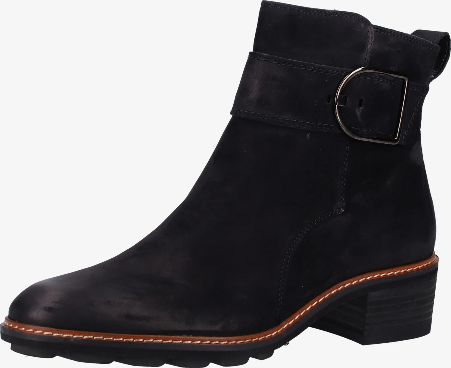 EffenLeerBlokhakRonde neusRitszakken aan de zijkantHak met laagjes lookProfielzolenEnkelhoogVersterkte hakHielbandApplicatiesOp staal nadenBuigzame gripNubuck leerFlexibele zoolNon-slipGlad leer