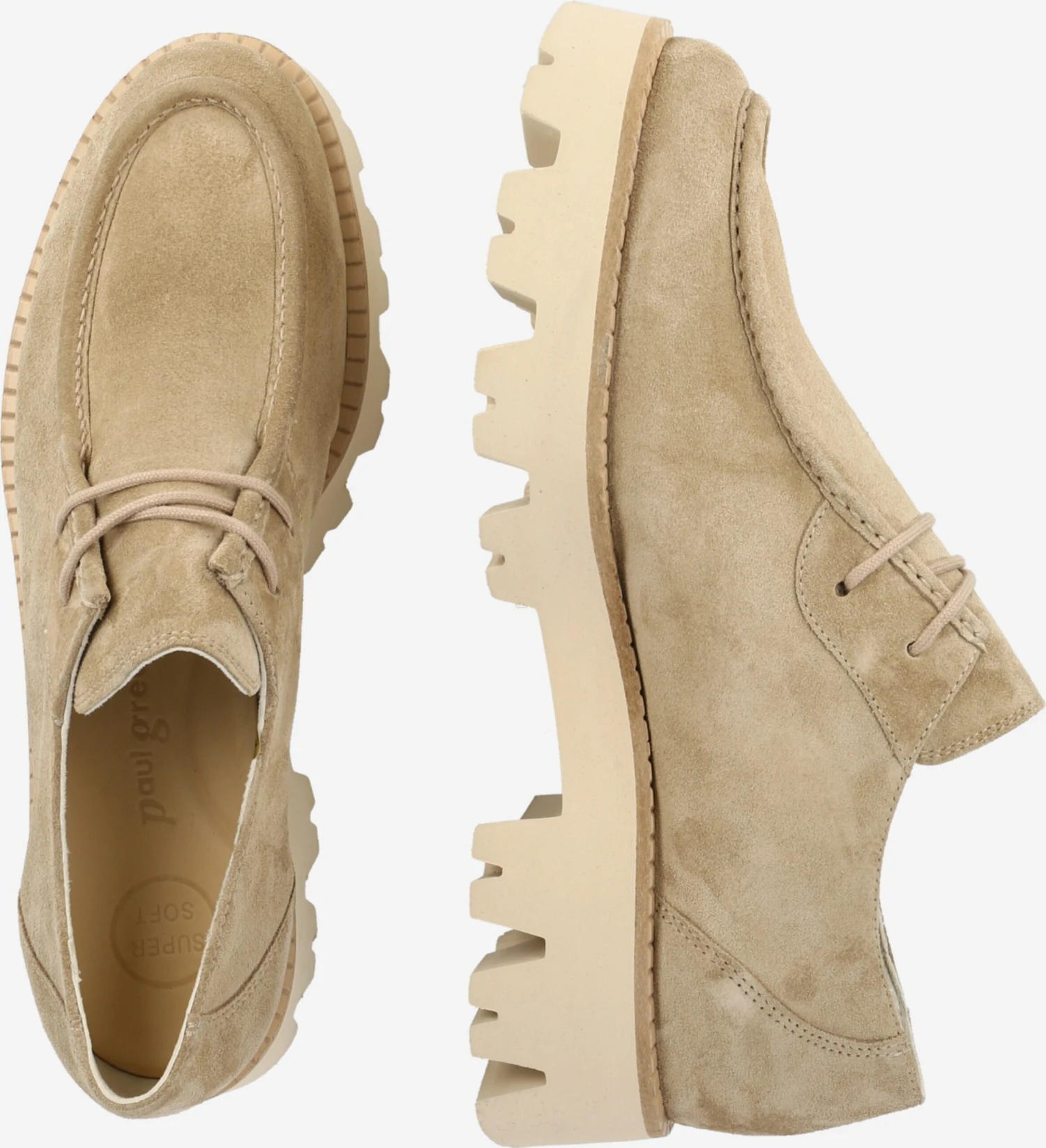 EffenLeerBlokhakMet plateauRonde neusVetering met 2 gatenProfielzolenVersterkte hakOp staal nadenAnti-slip zoolSuèdeSnoersluiting